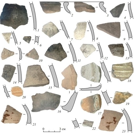 - В двух разведочных шурфах и зачистке на участке археологи нашли культурный слой XVII – начала XX века с большим количеством фрагментов гончарной посуды курских мастеров XVIII–XIX веков, - сообщает региональное управление по Государственной охране объектов культурного наследия. - Самая неожиданная находка - обломок лепного сосуда эпохи бронзы.