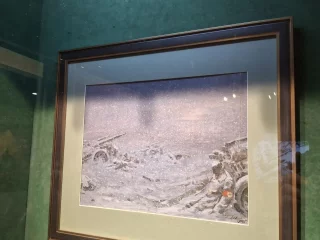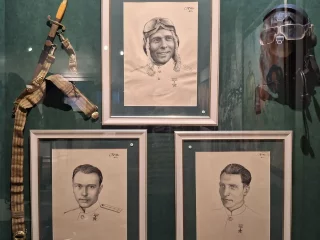 Тут же, в этом зале, вниманию посетителей представлены курские раритеты - несколько фотоаппаратов и карандашные наброски земляка, фотокорреспондента Михаила Иванова, работавшего в "Молодой гвардии". Он создавал их в тот момент, когда находился в военном госпитале.