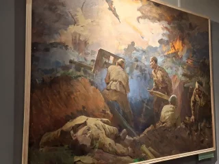 "Доставка продовольствия партизанам", "Маршал Василевский на Курский дуге", "Брошенные немецкие пушки" Петра Лихина, портреты курян - Героев Советского Союза Василия Шуклина, полотна Александра Дейнеки - "Партизаны" и "Победа"... Всё это невольно наталкивает созерцателя на простую, но единственно правильную мысль: великий и вечный подвиг творили обычные люди. И только теперь, спустя десятилетия, глядя на эти сцены из фронтовой жизни, запечатленные мастерами, мы понимаем - нет, эти люди не обычные. Каждый из них - герой.