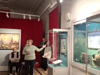 - Война и искусство - понятия, казалось бы, несовместимые, - рассказала старший научный сотрудник музея Наталья Волобуева. - Но именно искусство первым реагирует на все те изменения, которые происходят. Великая отечественная война для нас оказалось очень тяжелой. Несмотря на героическое сопротивление, фашистская армия продвигалась вглубь страны. И в этот момент от каждого человека, на каком бы посту он не находился, требовалась истинная самоотверженность, служение своей Родине. Деятели искусств не остались в стороне от этих событий. От них требовалось нечто принципиально иное. Они должны были поднимать боевой дух, поддерживать наших солдат на передовой и оставшихся в тылу. И эта битва была не менее важной, чем на реальные бои на поле боя.