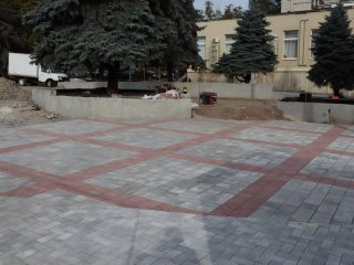 Новую тротуарную плитку укладывают несмотря на то, что многие работы еще не завершены. Подпорные стены не доделаны, у "Куряночки" высятся кучи песка, ездит экскаватор, но кое-где действительно стали укладывать новую плитку.