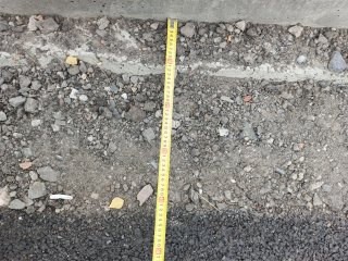 И действительно, по краю проезжей части асфальта почему-то нет. От бордюра зачем-то сделан отступ, который засыпан щебнем и землёй. Причем, отступ немаленький. Судя по фото - около 40 сантиметров. Жители бьют тревогу.