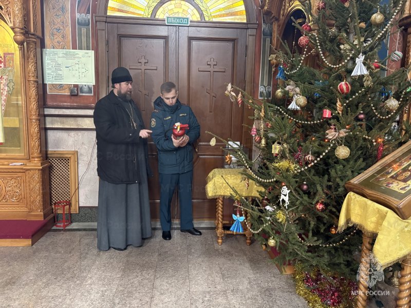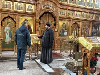 - Наш храм небольшой - по площади почти тысяча квадратных метров. Всего 18 человек обслуживающего персонала. Раз в неделю мы проводим небольшие противопожарные учения, еще раз отрабатывая действия во время нештатных ситуаций, - рассказывает спасателям протоиерей, настоятель храма святых Царственных страстотерпцев Олег Чебанов. – По опыту прошлых лет в рождественскую ночь праздничную службу посетят более полусотни прихожан.