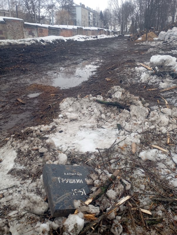 Уцелеет ли этот памятник после реконструкции мемориала? Или, быть может, его постигнет судьба надгробия капитана Грушкина, которое сломано, вырвано и валяется под слоем грязи, веток и снега?..