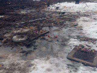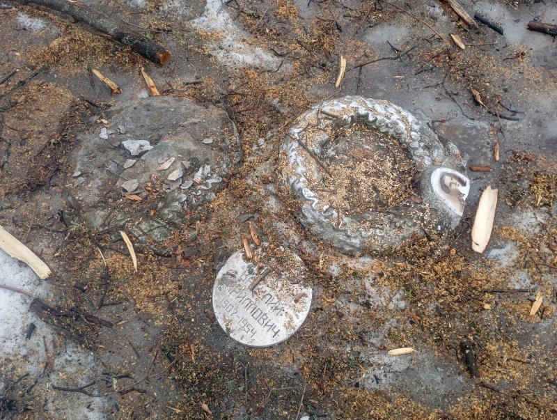 В итоге брошенный на землю бюст Перекальского очистили от снега и льда, обернули в пленку и отвезли на склад. А вот что теперь делать с разрушенными надгробиями погибших воинов, не очень понятно. По могильным плитам и памятникам с именами и фотографиями бойцов, погибших за Родину, то ли прошлись тяжелой техникой, то ли били кувалдами... Результат - на фото.