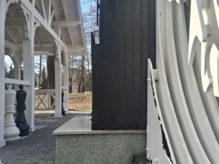 Самым показательным свидетельством неудовлетворительного состояние беседки стала гигантская фигура в виде профиля шахматной фигуры коня. Белоснежный слой стал отходить практически по всему контуру, являя миру её основу радикально черного цвета. Если бы белая краска облезала в строго горизонтальном направлении, в виде продольных полос, можно было бы выдать коня за зебру. Но покрытие сходит с фигуры хаотично. Поэтому теперь шахматная лошадка напоминает скорее пятнистую корову.