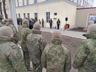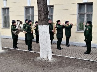 В девять часов утра у около КПП войсковой части №11262 - это знаменитая химбригада - зазвучал гимн Российской Федерации. Его исполнил военный оркестр. Военнослужащие, "вооруженные" гвоздиками, стройным, но негромким хором запевали знакомые слова.