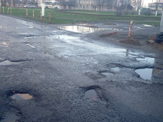 Любопытно и использованная у автовокзала проверенная "технология" латания ям. Их пытались уменьшить с помощью тротуарной плитки. Получилось не очень...