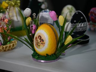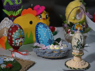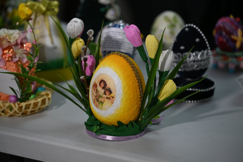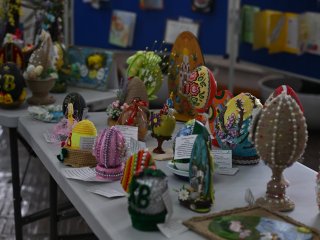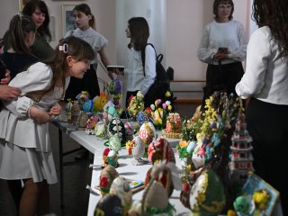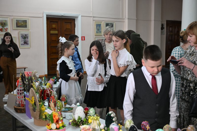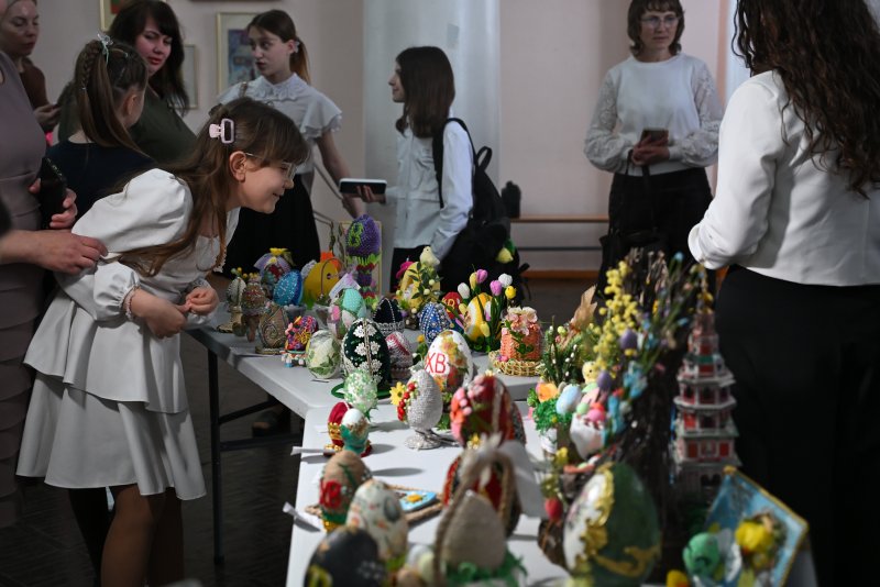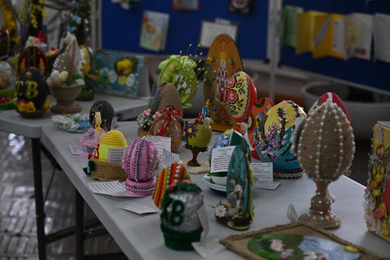 Яркие работы конкурсантов вошли в пасхальную выставку, которая украсила фойе Дворца пионеров и школьников.