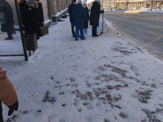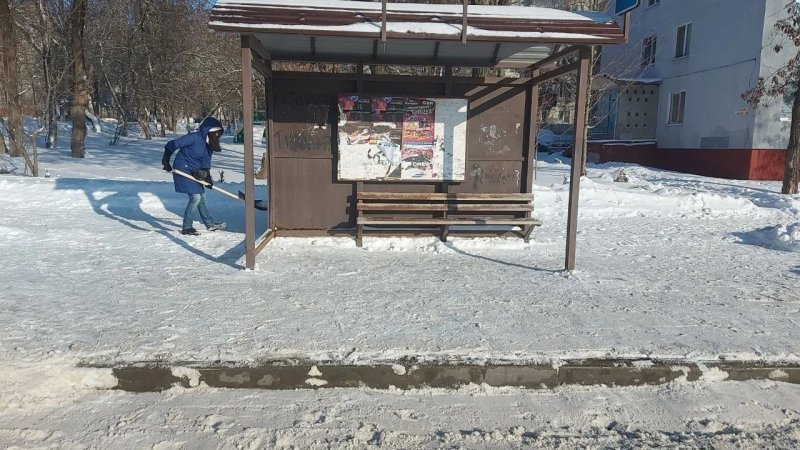 Представителям комитета документационного, ресурсного обеспечения и автоматизации систем управления администрации повезло больше - они убирают снег, как и положено, - в перчатках. Сегодня, 20 февраля, они продолжили работу по благоустройству остановки «улица 9-го Января» и прилегающего к нему пространства.