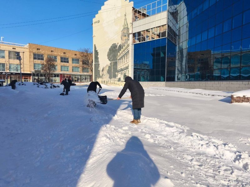На субботники по уборке снега вышло большое количество чиновников Курска и области. К ним присоединяются сотрудники различных предприятий.