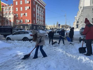 Сегодня сотрудники Министерства культуры тоже не остались в стороне и дружно вышли на субботник. Они очистили от снега территорию вокруг Дома книги и Воскресенско-Ильинской церкви.