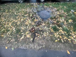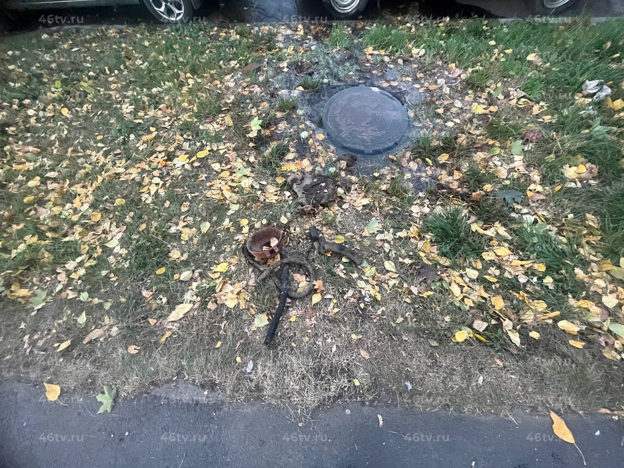 Судя по наличию у люка каких-то гнилых запасных частей, на месте уже пытались работать какие-то мастера. Но у них, видимо, ничего не получилось. Скверно пахнущая вода продолжает орошать окрестности в центре Курска.