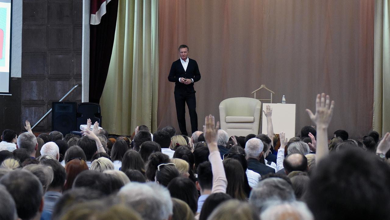 Встречи проходят в формате диалога. Студенты задают вопросы - Роман Старовойт отвечает.