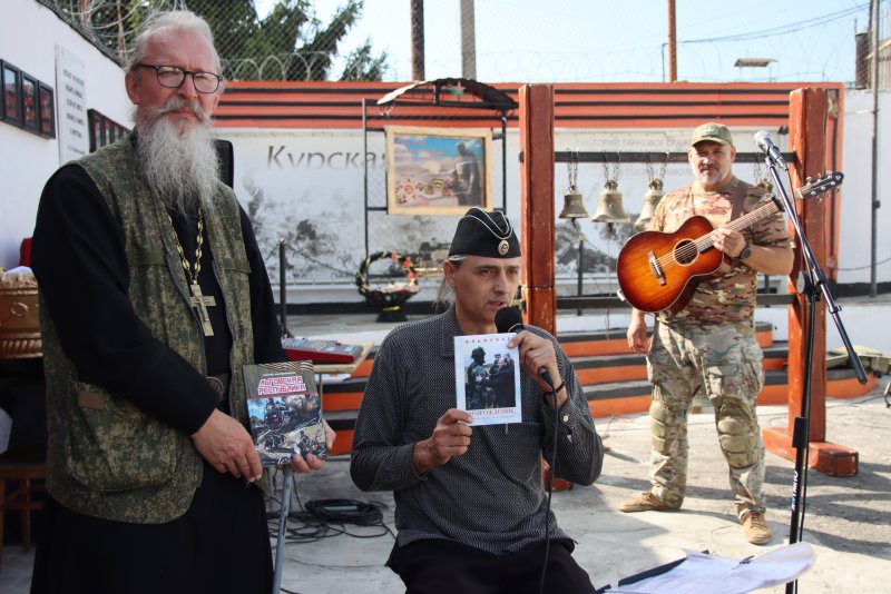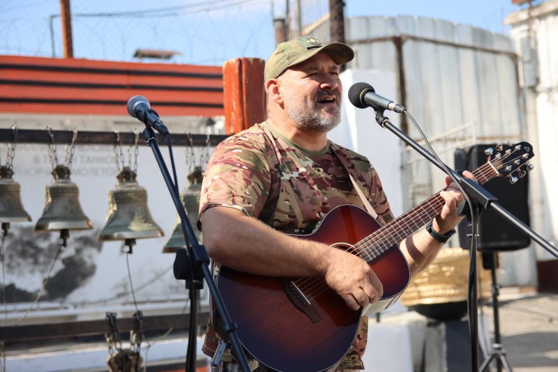 Концерт в колонии под открытым небом. Фронтовой звонарь Вадим Мартовой ( позывной "Добрый") сыграл и спел для сотрудников и осужденных второй исправительной колонии.