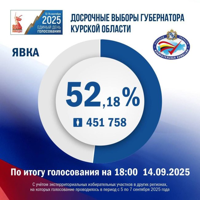 Курский избирком обнародовал явку избирателей на 18:00. Она составила 52,18 процента от общего числа избирателей.