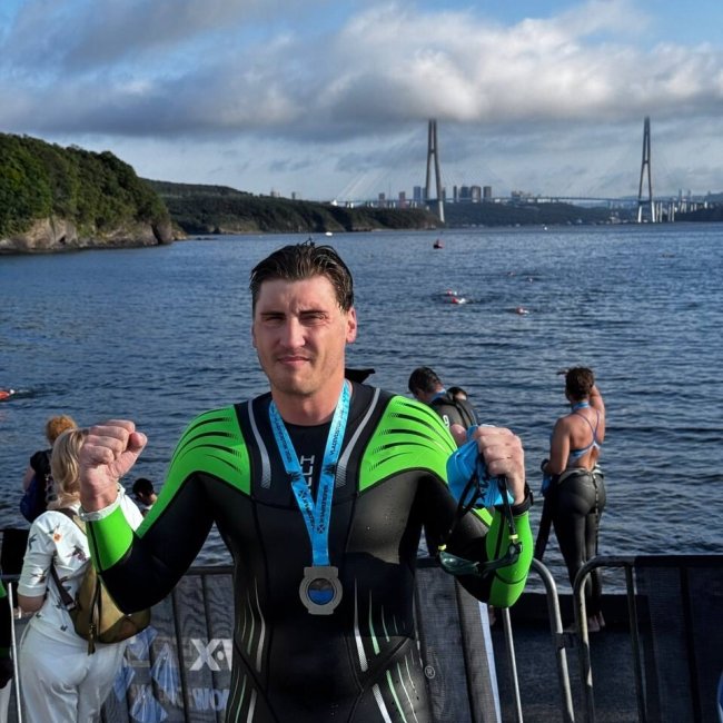 Это сладкое слово "Босфор"... Вслед за турецким Босфором курянин Николай Аникеенко переплыл Босфор Восточный. Этот пролив разделяет материк и остров Русский.