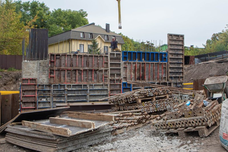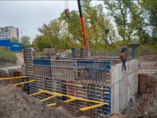 На данный момент бригада рабочих занимается демонтажем опалубки. Далее предстоит извлечь шпунт и выполнить гидроизоляцию подземной части КНС. Уже на выходных планируется начать обратную засыпку грунта.