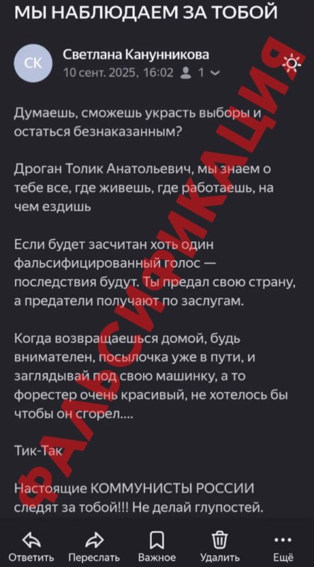 - Безусловно, региональное отделение КПРФ и лично Светлана Канунникова никакого отношения к данным письмам не имеют и всячески осуждают такого рода сообщения, - говорится в официальном сообщении курских коммунистов. - Провокация, на наш взгляд, исходит от вражеских структур – предположительно, ЦИПсО (Центр информационно-психологических операций – подразделение украинских сил специальных операций).