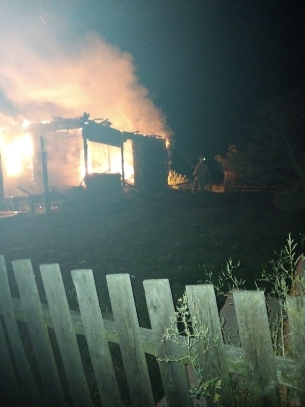 К моменту прибытия спасателей жилой дом пылал открытым пламенем. Кровля обрушилась по всей площади строения. Пожарные не допустили распространения огня на расположенные вблизи постройки.
