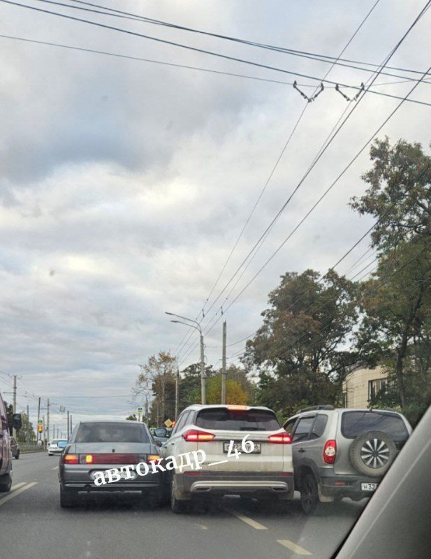В Курске на улице 50 лет Октября произошло необычное ДТП с участием трех автомобилей. Об этом сообщили очевидцы, которые выложили фотографии с места аварии в местный автопаблик.