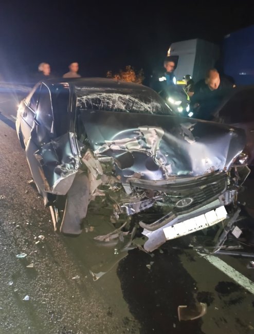 Примерно в 21:30 на дороге "Свобода - Щигры" столкнулись дальнобойная фура Renault и отечественный седан "Лада Приора".