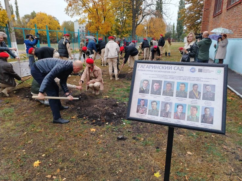 Сегодня в Курске появился «Гагаринский сад». Его заложили у школы №50 на улице Гагарина. Трудились и дети, и взрослые. Сажали 12 вишен.