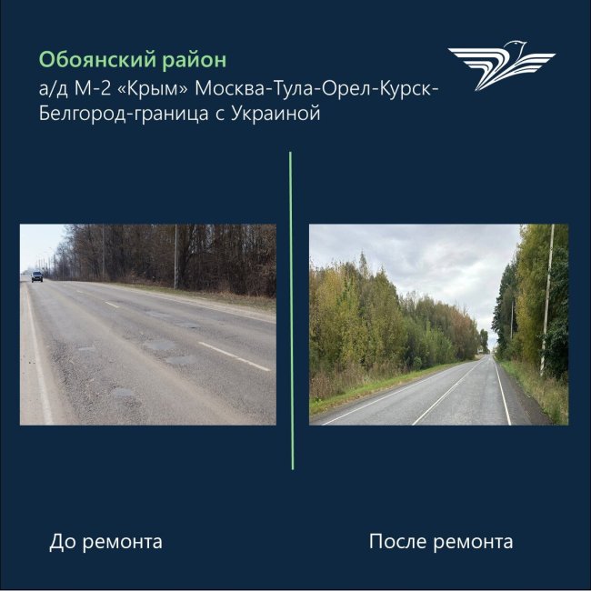 В Обоянском районе Курской области завершили ремонт автодороги М-2 «Крым». Трасса соединяет Москву, Тулу, Орел, Курск, Белгород, а затем ведёт к границе с Украиной.