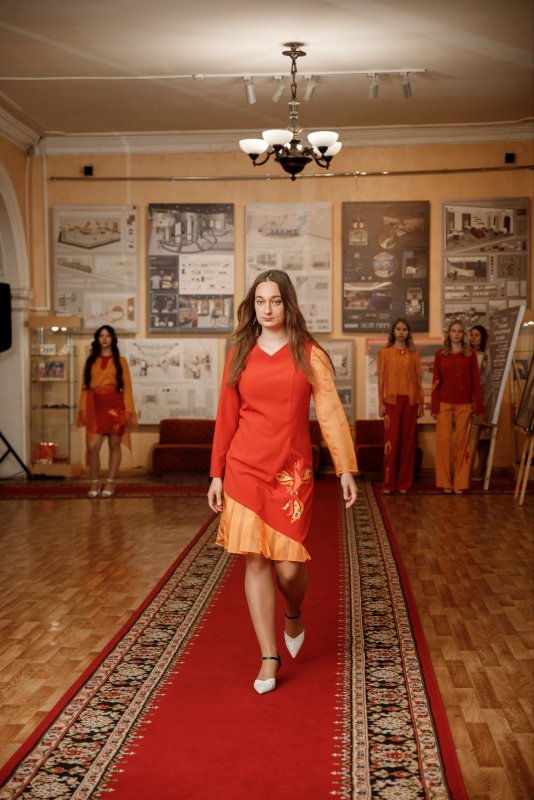 Особое внимание было уделено показу коллекций одежды и украшений, где ожили традиции декоративно-прикладного искусства. Золотая вышивка, мерцающий бисер, тонкое гильоширование и классическая гладь – все эти техники были мастерски применены студентами специальности «Декоративно-прикладное искусство и народные промыслы». Яркая коллекция «Жар-птица» удивила сочетанием современных дизайнерских решений и аутентичных элементов старорусских костюмов.