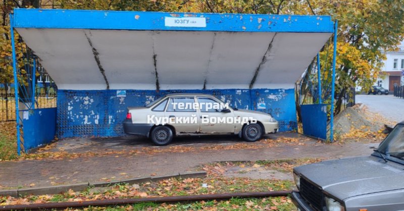 Куряне публикуют фото автомобиля, который ровненько припаркован прямо под козырьком трамвайной остановки.