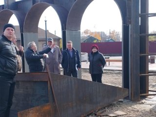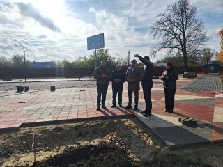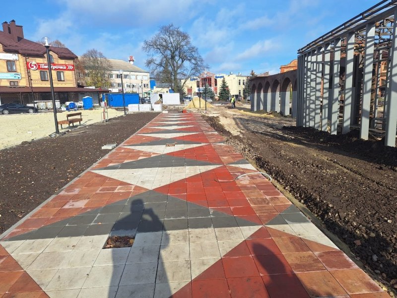 В настоящее время завершаются работы по укладке плитки на главной площади, строится большая сцена, предназначенная для проведения массовых мероприятий, устанавливаются парковые скамейки.