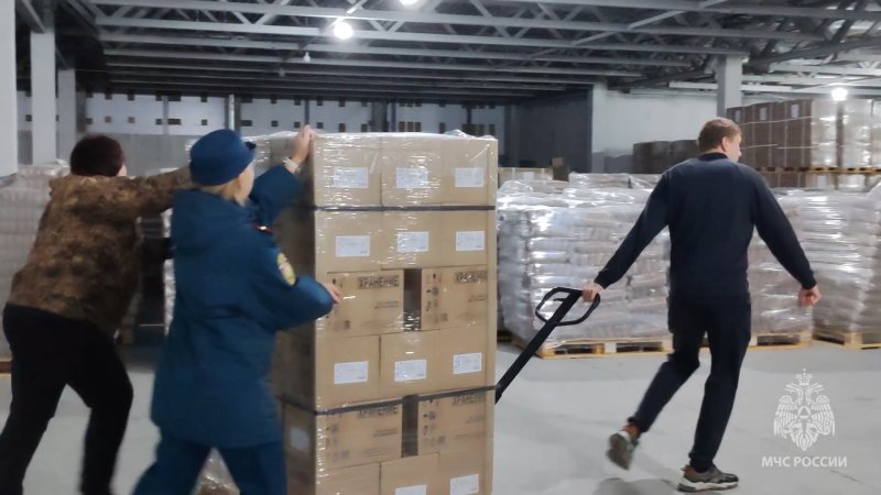 Курск встретил очередной гуманитарный конвой. Росрезерв выделил партию помощи, Донской спасательный центр МЧС России доставил. Груз вкусный - 34 тонны рыбных и молочных консервов.