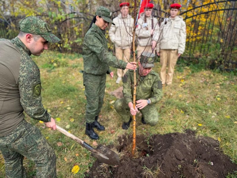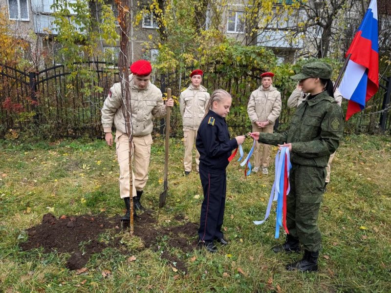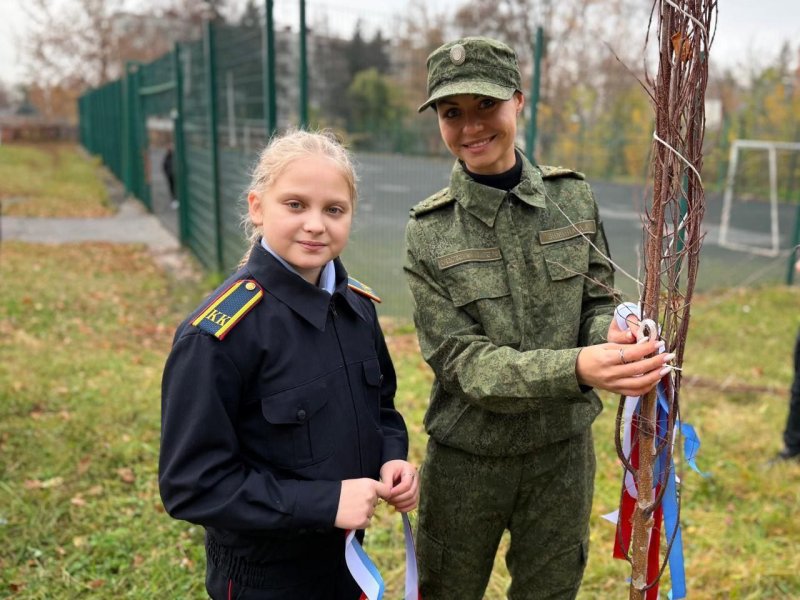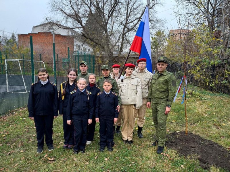 В День народного единства офицеры СК РФ по Курской области вместе с кадетами ведомства и юнармейцами высадили в школьном дворе саженцы березы.