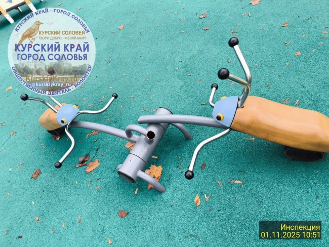 Как сообщили в паблике "Курский край - город соловья", зайцу и медведю оторвали уши, а качели просто снесли. Еще одни качели выпачканы в грязи, у них нет проводов.