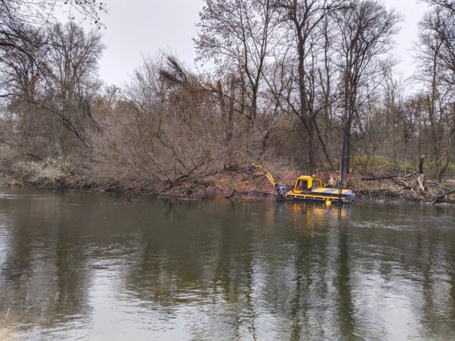 - Туда с помощью земснаряда будет перекачиваться ил со дна реки. Подрядчик производит снос аварийных деревьев с помощью плавающего экскаватора-амфибии. Деревья свисают над водой. Кроме того, рабочие достают утонувшие деревья из русла и со дна реки, - рассказал в телеграм-канале Левин.