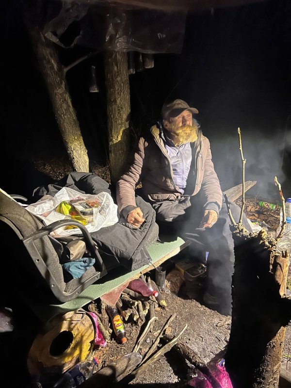 Курские волонтеры на днях обнаружили в лесу пенсионера. Анатолий Иванович спит под деревьями, пищу, добытую на средства от сдачи металла, готовит на костре. Дедушке привезли продукты и предложили помощь в переселении. Он наотрез отказался.