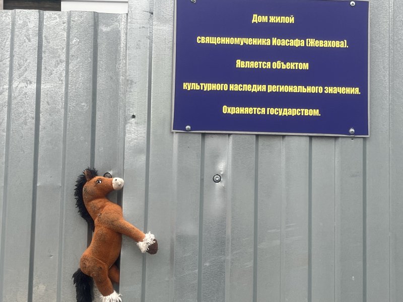 Так, игрушечная лошадь появилась на заборе известного в Курске дома. Это имеющий историческую ценность обветшавшего особняка, который числится как Дом епископа Иоасафа Жевахова. Он расположен на пересечении улиц Золотая и Семеновская.