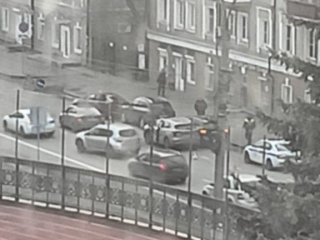 Все автомобили, что естественно для улицы с односторонним движением, направлялись в сторону Красной площади, но "что-то им помешало". Начались столкновения. В результате травмы были зафиксированы у водителя автомобиля корейского производства (Hyundai).