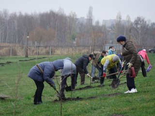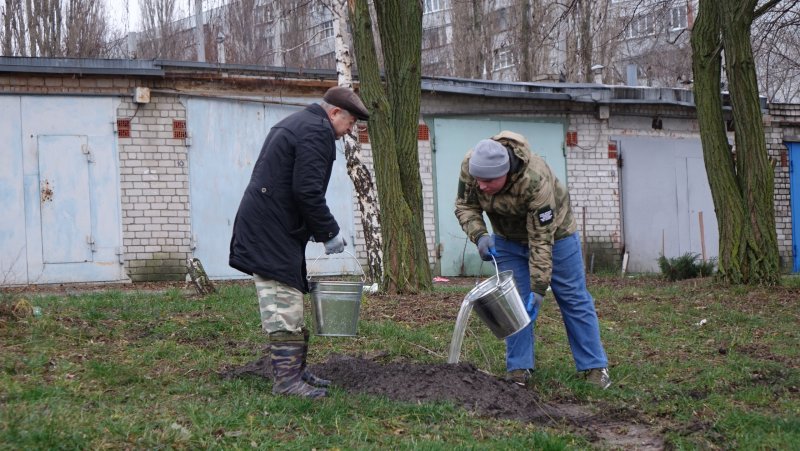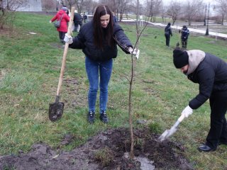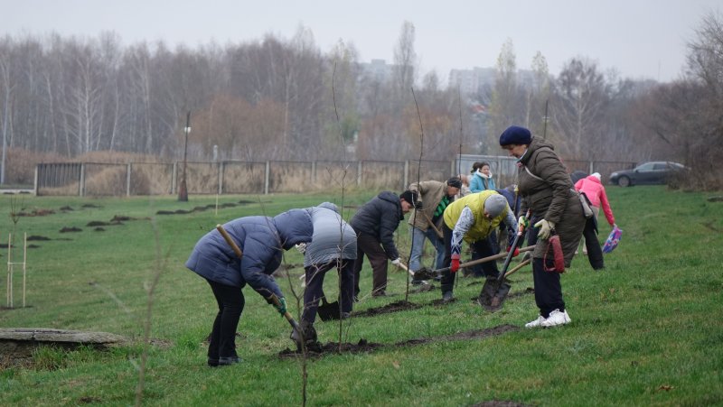 Мэр Курчатова Курской области Игорь Корпунков вместе с курчатовцами заложил дубраву на Городской Набережной.