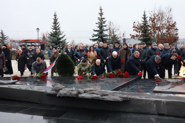 В Курске в День Неизвестного Солдата почтили память советских и российских бойцов, павших в боях за Родину церемонией возложения цветов на мемориале «Курская дуга» у Вечного огня у надгробия «Неизвестному солдату Курской земли».