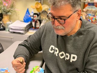 - Обертки яркие, красивые, с видами нашего любимого города. Сразу вспомнилось детство, когда, съев конфетку, мы делали «секретики», - позитивно начал описывать свои впечатления Владимир Конев.