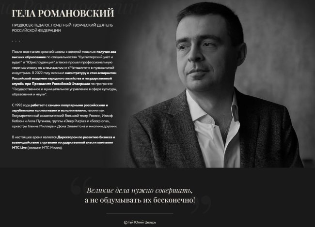 Как выяснилось, с 13 октября 2025 года в структуре областной власти в качестве советника губернатора прописан известный продюсер и один из руководителей холдинга МТС Медиа Гела Романовский.