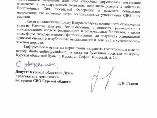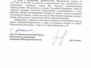 Депутат Гулиев заявил, что получил обращения от жителей Курской области, включая участников специальной военной операции, которых обеспокоили слова актера.