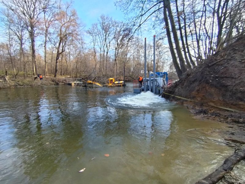 - Земснаряд, как большой пылесос, собирает ил с дна реки и перекачивает на карты намыва. Затем вода возвращается в реку, а ил остается на берегу, - объяснил ход процесса министр природных ресурсов Курской области Максим Левин.