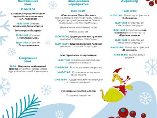 - В этот день здесь соберется столько Дедов Морозов, что каждый сможет не только поговорить с волшебником, но и сделать праздничное фото на память, - сообщают в региональном Правительстве. - Гостей ждёт насыщенная программа: тематические ленты от курского мультипликатора Бориса Дежкина, показ легендарного мультфильма «12 месяцев», весёлые активности в Полугорыныче, мастер-классы и вечерний концерт с диджеем.