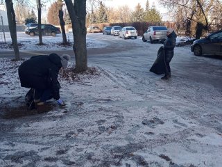 В Курске чиновники продолжают убирать мусор за горожанами. Так, вчера, 24 декабря, сотрудники администрации Центрального округа, несмотря на сильный мороз, лазили по кустам у домов №№ 100 и 102 на улице 50 лет Октября.