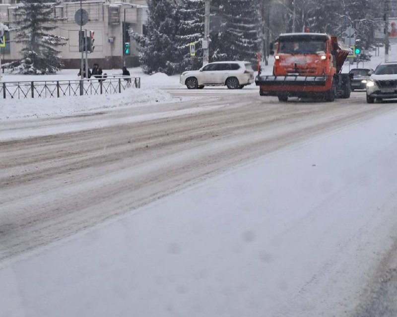 С утра 68 единиц специальной техники, а это комбинированные машины, самосвалы и тракторы, бороздят город: чистят снег, приводят в порядок улицы.