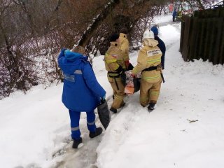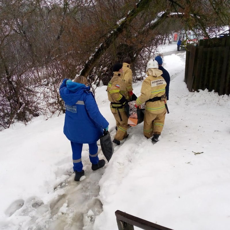 Пожарные транспортировали на руках женщину до машины скорой помощи. Больная была госпитализирована в лечебное учреждение.