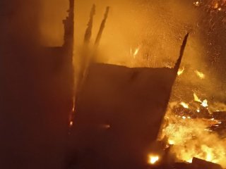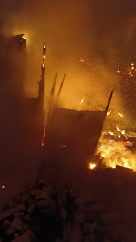 Пожар в д. Дюмино Октябрьского района произошел поздно вечером 7 января. Сгорел деревянный дом, обложенный кирпичом. Огонь к приезду спасателей распространился по всей площади, по всему периметру обрушилась крыша.