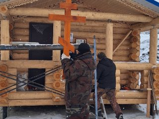 В Курской области в Медвенском районе в селе Любач у храма Космы и Дамиана на сруб купели установили крест.